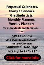 Buy your Unique 1-Page Photo Calendars, Perpetual Calendars & Weekly/Yearly Planners at www.JTCcreations.com Many great styles using your photos or ours. FREE U.S. S&H when you order today with Promo Code "RFS1"!