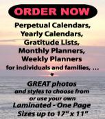 Buy your Unique 1-Page Photo Calendars, Perpetual Calendars & Weekly/Yearly Planners at www.JTCcreations.com Many great styles using your photos or ours. FREE U.S. S&H when you order today with Promo Code "RFS1"!
